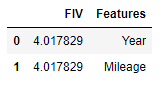 Nous allons utiliser le variance_inflation_factor, qui affichera essentiellement les FIV respectifs, puis inclure des noms pour que le résultat soit plus facile a explorer.