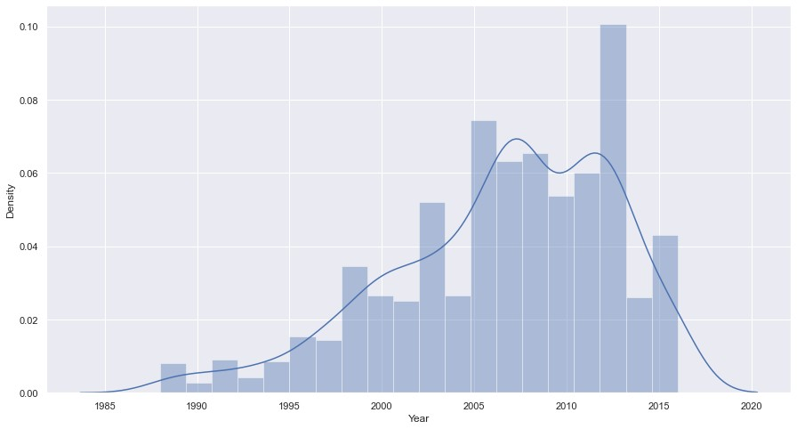 sns.distplot(data_no_mv['Year'])